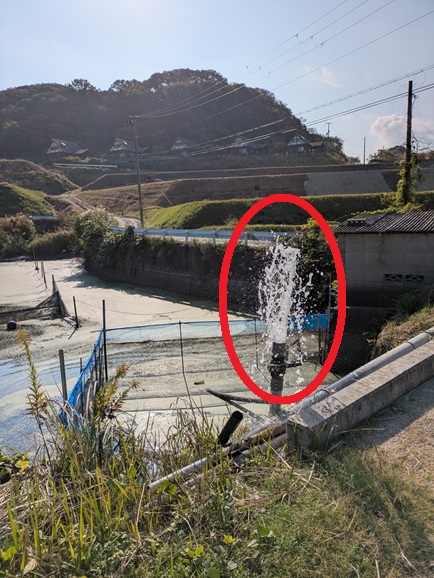 前日に雨が降ったため周辺からの流入水が多く、初日は微々たる排水量になると思います。